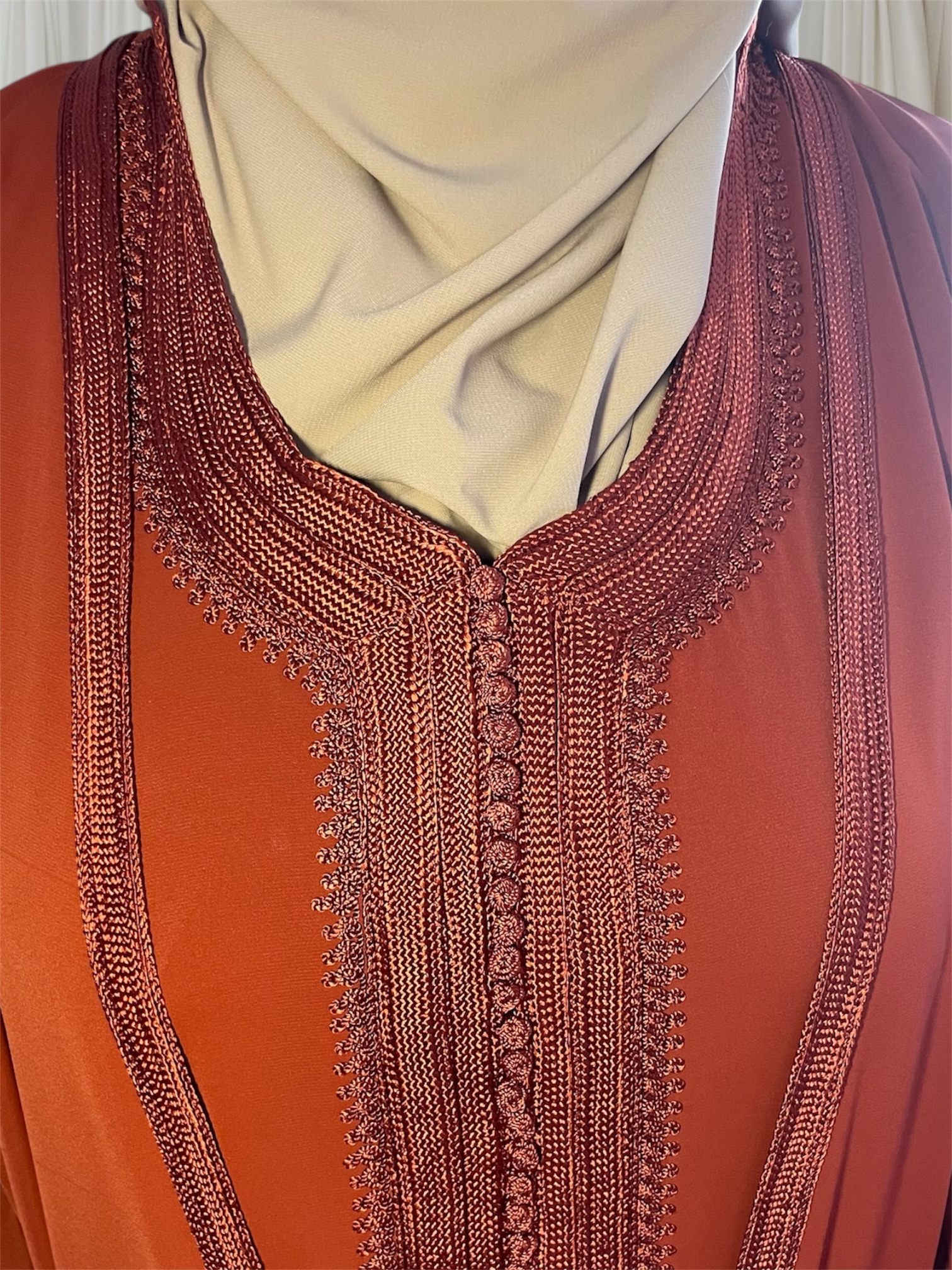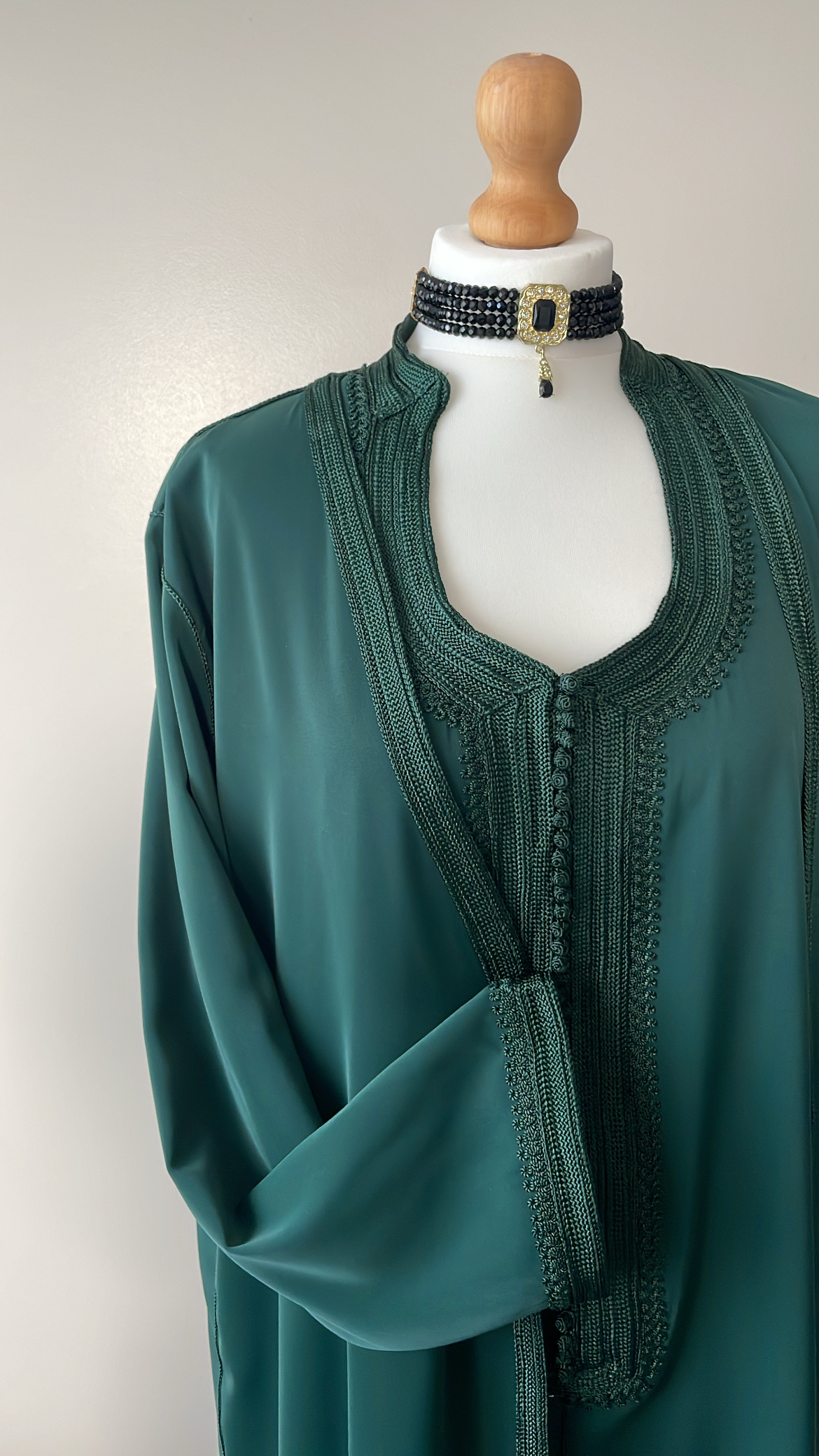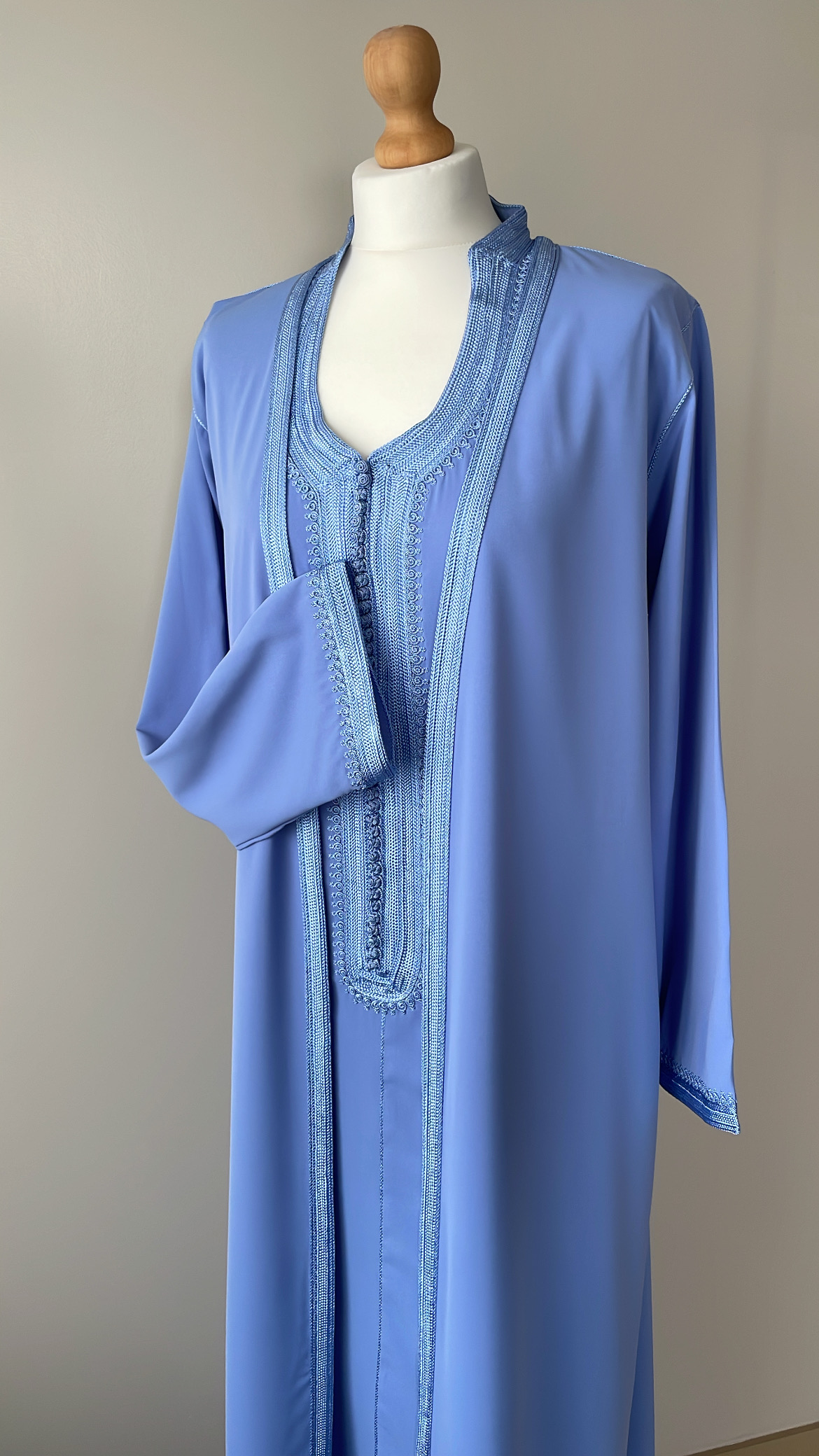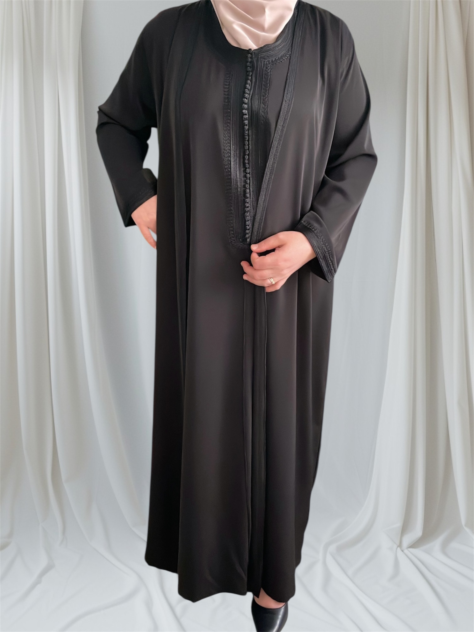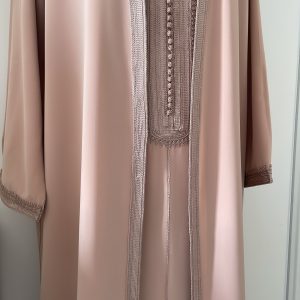 - un par-dessus ouvert avec manches longues brodées aux extrémités.