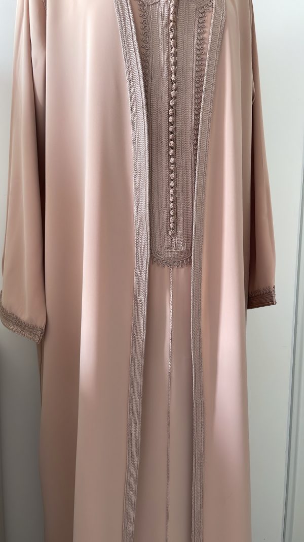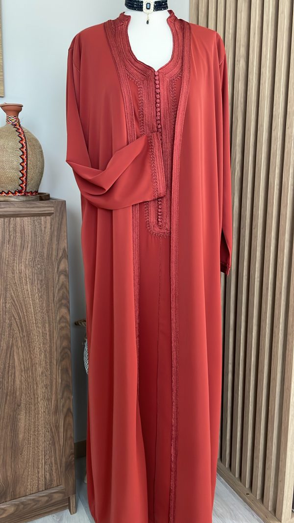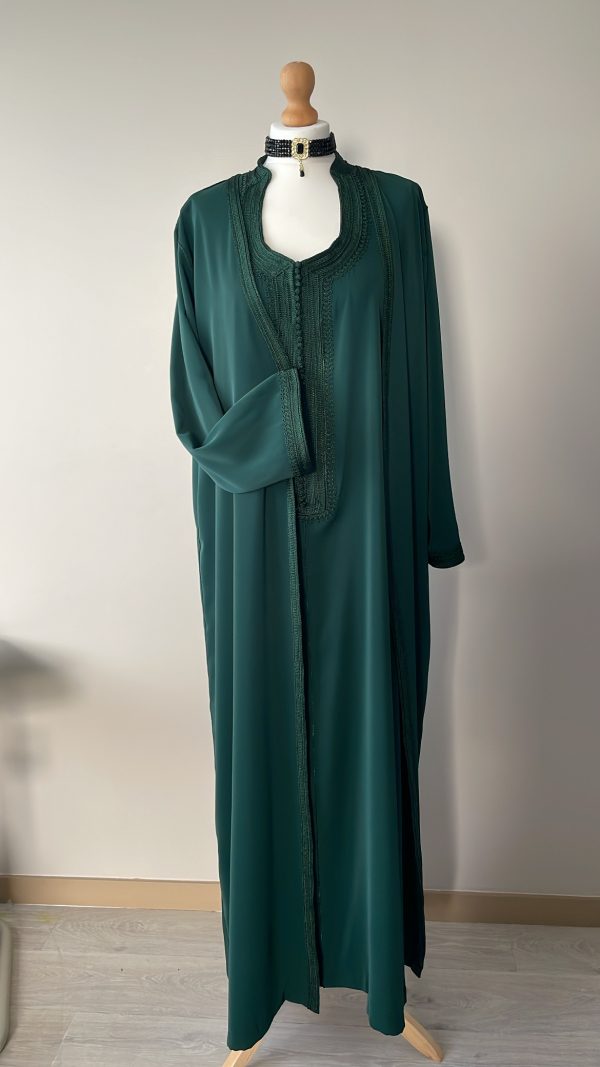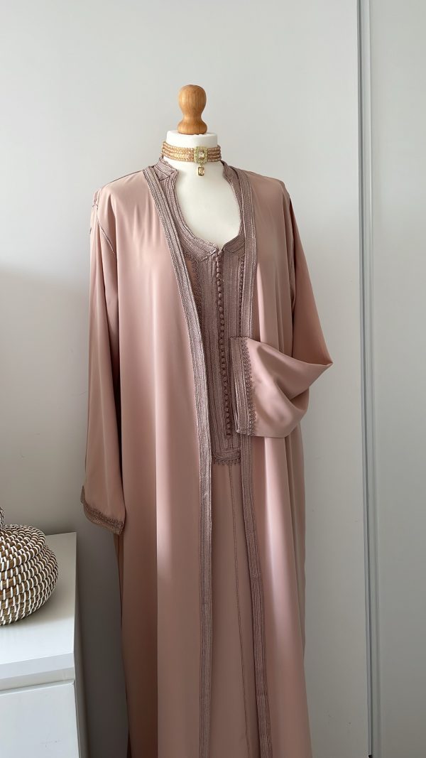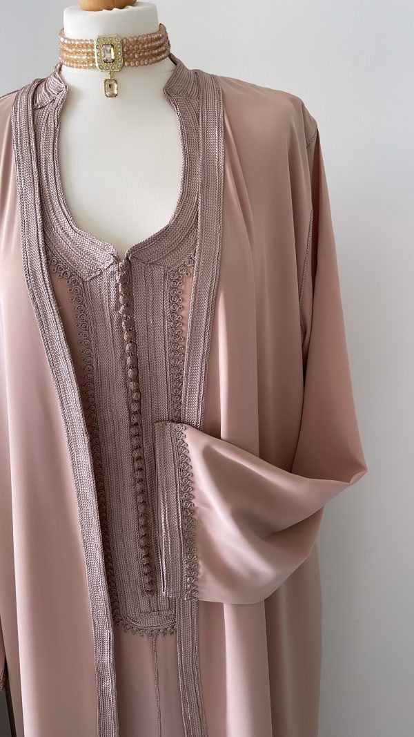 - un par-dessus ouvert avec manches longues brodées aux extrémités.
